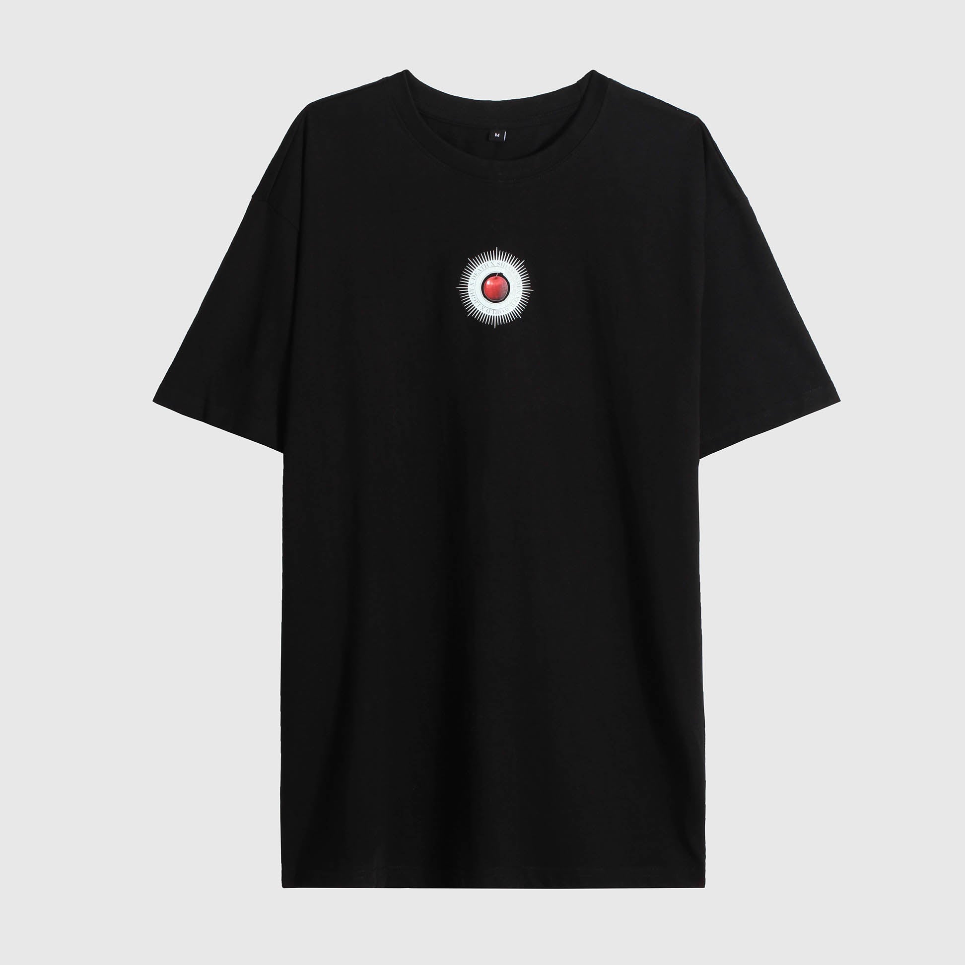 Tee-shirt noir en coton imprimé avant et dos